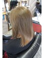ブリーチを使わないダブルカラー。一度明るくしてから、スノーアッシュとブルーアッシュをMIXして仕上げています。