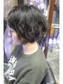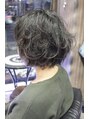 前回にパーマをかけた残りを活かしてのカットデザインです。梳きバサミを使わない、ドライカットをしない、隙間をつくった間引きのカットが特徴的。乾かすだけで空気を含んだような仕上がりに。