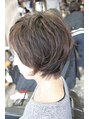 もともとの癖をいかしての骨格補正カット。丸くなりすぎない少しシャープな印象をお客様の雰囲気に合わせて作っています。カラーは白髪を染めつつハイライトも重ねています。