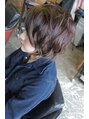 立体感のある前下がりショートデザイン。巻かなくても立体感があり、動きが出るショートをシザーだけで創っています。カラーは部分的にブリーチをして人気のプラチナグレージュをON.