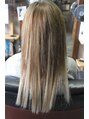 カラーは黒染めからアッシュ系にチェンジ。エクステでグラデーションに仕上げました。