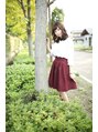 艶があり清楚なピンク系のデザインに仕上げました。前髪はアシメに少し流れる感じにパーマをかけています。立体感と艶感がカギ。