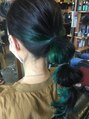 ♯アレンジ♯ポニーテール♯たまねぎヘア♯ルーズ♯インナーカラー♯グリーン♯ターコイズ♯おくれ毛♯2次会♯簡単アレンジ