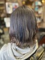 ダブルカラーのグレージュカラーにポイントでブルーとピンクのハイライトを入れました。