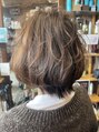 丸さを出したショートボブ。ランダムにかけたパーマでふんわりしたシルエットに。