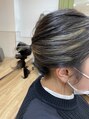 前髪に大胆にデザインを。おろしていると一見シンプルなダークトーンだけど、アレンジした時にデザインが出る様にホイルカラーも入ってます!