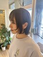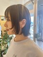 切りっぱなしのコンパクトボブに顔周りのみデザイン入れてることで、動きがでるのとアクセントに。