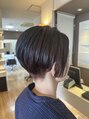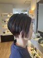 襟足はスッキリと刈り上げた前下がりスタイル。カラーは表面の地毛は残してインナーのみ暖色系でさりげなく♪