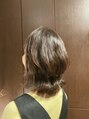 - 切りっぱなしボブ 前髪パーマ 暖色カラー