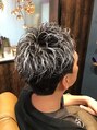 ツーブロックベースに、ランダムな動きのパーマと明るいメッシュ(ハイライト)を組み合わせた究極の個性派スタイル!パーマで立体感と束感を出し、メッシュでさらに躍動感と軽さを強調。周りと差をつけるエッジの効いた、遊び心あるスタイルを楽しめます。