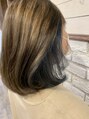 イルミナカラー☆インナーカラーブルーのインナーカラーは1度ブリーチをしてからカラーしました!重なる部分はアッシュベージュにしてツヤ感を出しました!