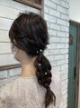 ゆるく巻いてトップを引き出すだけでも抜け感を出して、少し低めに結び目を持ってくることでより大人っぽい印象を与えることができます。パールやキラキラしたストーンを画像のように編み目にピンで入れてあげても華やかさが増して素敵だと思います^^