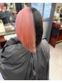 前回カシスピンクとオフブラックのツートンからリタッチと毛先をさらに明るくしてピンクパールとオフブラックのツートンに♪その後エクステ80枚で長さだしをしています◎