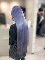 リタッチをしてからホワイトに色落ちするブルーラベンダー♪更にIRONOWA髪質改善トリートメントでスーパーロングでも叶う絹質感へ♪