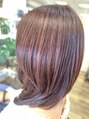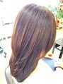 セミロングのウルフカットです。縮毛矯正も当サロンで施術しています。ダメージの少ないコスメ系使用。カラーもオーガニックカラーでツヤ感アップ。