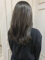カットは毛先を整えつつ少し動きのつくように顔まわりはレイヤーをいれたスタイルです。カラーは赤味消しカラーで透明感と柔らかさがでるモノトーンアッシュカラーに仕上げてます