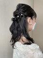 結婚式アレンジに人気のハーフアップ♪サイドは後れ毛は出さずにスッキリまとめ、パールのアクセサリーで華やかさをプラス☆