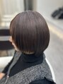 伸ばしかけでハネやすい肩前ボブも酸性ストレートで柔らかくまとまる美シルエットに。カラーは、頭皮に優しいオーガニックカラーでより艶髪に仕上げました。