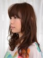 厚めバングにセミディレングスのレイヤースタイル。女性の持つやわらかさを最大限に引き出したスウィートカールヘア。透明感のある寒色系カラーとも相性抜群です。ふれたくなるような髪を求めている方にオススメです。