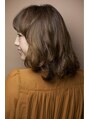 斜めバングのミディアムレイヤーです。シルエットはやさしい丸みで甘いボリューム感で可愛さを際立たせます。しっとりとしたモーブカラーに落ち着いた空気感のパーマに誰もがひとめボレ☆間違いなし!!