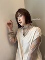 切りっぱなしボブ/ピンクベージュ/前髪/グレージュ/原宿神宮前