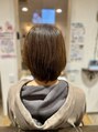 美髪ストレートパーマ&髪質改善カラーです!うねりを取りながらダークブラウンを重ねて乾かしただけでまとまる艶髪ひし形ボブになりました!