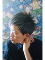 アウトラインはタイトにグレー系の濃いめのカラー。根元から毛先へグラデーションカラー(毛先はブリーチをし8レベルアッシュ系のカラーを、中間に6レベルグレー系)を加え襟足をタイトに刈り上げる事で全体のフォルムがフォワードに☆