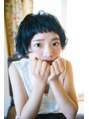 シンプルだけど個性を出したい、そんな方にオススメ☆ 短め前髪が少女のようなかわいらしさとイノセントな雰囲気のショートスタイル。 髪質により変わりますが、重さを残してカットしてパーマをかけているので髪が伸びた時も扱いやすいかと思います。