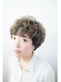 ウェーブのかかったショート。表面のハイライトと内側のローライトにより立体的にウェーブが引き立ちます☆全体的には、丸いシルエット、やわらかい空気感伝わりますね♪