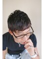 サイドをツーブロックにしたアシメショートスタイル。ストレートヘアの方は、トップだけ柔らかくパーマをかけるとスタイリングしやすいです。カジュアルにもビジネスにもオススメです。
