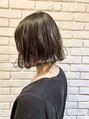 アゴラインのボブスタイルでゆるめのパーマによる大人の女性にオススメしたいスタイルです。パーマは毛先中心にかけているため強すぎず柔らかさを重視しています。