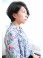 前髪長めなショートスタイル。カラーは地毛が少し光で明るく見える程度の5LVブラウン。パーマはかけてないですがアイロンで動きをつけるとこれぐらい動きが付けられるスタイルです。もちろんパーマでもOK!