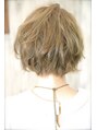 ショートボブです。重ためのベースに顔まわりとトップ部分に軽めにレイヤーを入れて動きをつけやすくしております。カラーリングは赤味を抑えるようにアッシュやベージュ系の12Lvです。パーマはかけてないのですがパーマでにたような質感は十分出せます!