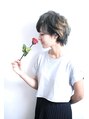 ショートカットですね。パーマはかけてませんがモデルさんが直毛なのでアイロンで巻いてます。カラーは赤味を完全に抑えた色で見た目は灰色です。11Lvくらいなのでブリーチは必要ないです。何度も塗り重ねて前のお店から数えて半年以上かかっている色です。