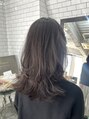 韓国レイヤーカットです^^ワンカールのみのスタイリングですが、簡単にくびれヘアが作れるようにカットさせていただいております!カラーは、暗めでも透明感たっぷりなグレージュカラー!冬に人気のお色味です^^