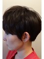 襟足にクセがあるのでツーブロックにして対応。分け目がでないようにトップにパーマをかけてクセとなじませるように。カラーは赤みを抑えたミント系