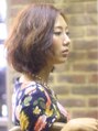 レイヤーの入ったミディアムボブに、ふわふわのカールをつけたスタイルです☆深みのあるチョコレートオレンジカラーに、サイドパートの長めの前髪で大人可愛い雰囲気に♪パーマは髪質、髪の状態で水パーマとデジパーを使い分けます!