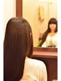 M3Dトリ-トメント施術をしてあります。モデルさんの髪質が元々ストレ-トで綺麗なのもありますが、くせ毛の方や、パ-マ、カラ-で傷んでしまった髪もツルツル、ツヤツヤになりますよ