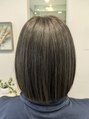 切りっぱなし風のボブカットです。セットも簡単で外ハネアレンジも可能です。カラーはマット系で落ち着いた感じに仕上げました。