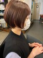 ナチュラルなハイライトを入れて、白髪をぼかした亜麻色ブラウンカラー。上品な色合いとショートボブの相性が抜群です☆