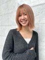 ミルクティーベージュのカラーと切りっぱなしボブでオシャレ感上がるヘアに♪縮毛矯正履歴のお客様なので優しくブリーチをしています