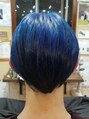 ブリーチで脱色後トレニージョカラーでコバルトブルーのカラーを入れました!カットはボブっぽく、でも内側はガッツリ3mm刈り上げで