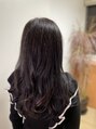 黒髪ロングスタイルです。大人女性をエレガントに表現するにはコテ巻きが必須です。カラーリングをしなくてもこの長さはトリートメントが必要です。今回はオージュアエイジングケアラインを使用しました。