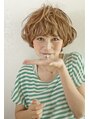 外国人の子供のような無邪気な遊び心のあるマッシュボブ☆くせ毛のようなラフウエーブがやわらかい質感をあたえてくれ、ひし形シルエットで後ろから見た時の首がスッキリ見える効果と、目の上で切った厚めバングが目力UP☆誰でもチャレンジできるスタイルです