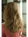 やわらかい髪の質感を最大限に引き出すためにホワイトベージュのカラーリングにランダムなゆるすぎないウェーブをつけています。厚めの前髪が優しい雰囲気を演出し、ゆるすぎないウェーブがやりすぎない華やかなイメージをつくってくれます☆