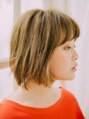 首が少し見えるラインにカットされたボブスタイル。完全に重めにはなっておらず、毛先やサイドに動きが出しやすいようにカットされています。流れるような質感と毛先の動きがみんなに愛されやすいスタイルに仕上げてます☆