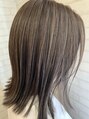切りっぱなしロブスタイル。イルミナカラーで透明感と艶カラー。グレイッシュな大人切りっぱなしスタイルに。