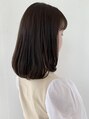 セミロングからミディアムスタイルにチェンジしました。動きを出しつつまとまる範囲ギリギリの段を入れています。ゆるやかな前上がりシルエットです。
