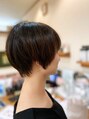 顔まわりを丸いラインで切るかわいくて小顔に見えるショートです。コンパクトシルエットにするため仕上げはオイル・バーム・クリームでつやつやに( *´艸`)