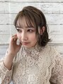 アゴラインの外ハネボブスタイルに、細かな表面ハイライトを入れたスタイルです!春らしく、やや暗めの淡い水色アッシュのベース色をセレクト!シースルーバングとの相性も◎です!顔まわりにウエーブをつけ、セミウエットな質感にすることで抜け感が出ます!